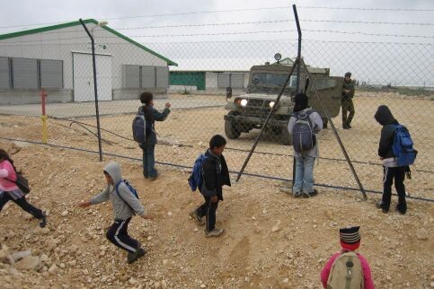 Each afternoon, an average of 18 children, ages 5-14, are dismissed from school and make their way towards the road that serves Tuba and Maghayir al-Abeed. In the late 1990s, Palestinians using the road increasingly came under attack from violent settlers. By 2003, Palestinians were forced to stop using the road completely. Since the beginning of the escort, the children have waited daily, in the shadow of Maon and Havat Maon, for the arrival of a military escort which permits them passage through an area that settlers have annexed through the use of violence. The children often wait for hours and struggle to find activities to fill their time — playing sports or getting an early start on homework assignments. During harsh summer and winter weather, the children find protection from the elements under evergreen trees planted by the Jewish National Fund to demarcate the area as Jewish land.