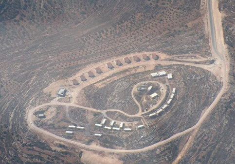 A aerial photo released by Americans for Peace Now clearly displays the development of an illegal outpost, Palgei Mayim, located near ”Eli” settlement and east of ”Ariel” settlement in the north of the West Bank. (ARIJ)