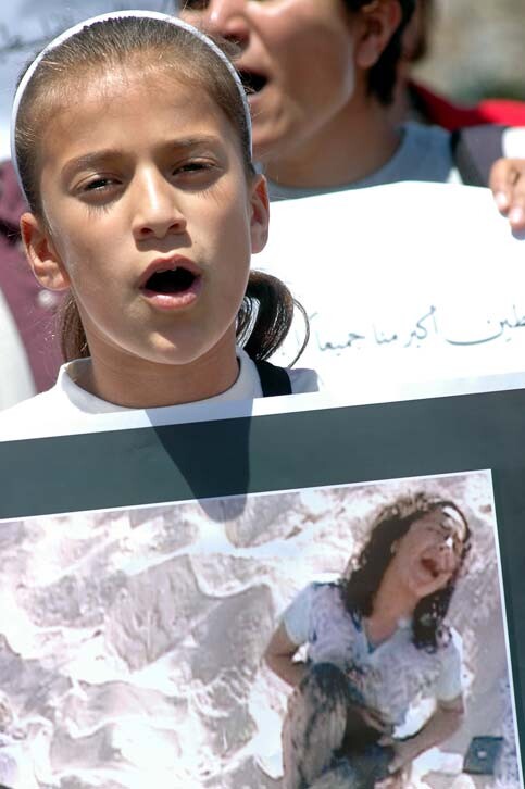 A Palestinian girl attends a demonstration against the security disorder in the West Bank town of Ramallah June 15, 2006. (MaanImages/Mushir Abdelrahman)