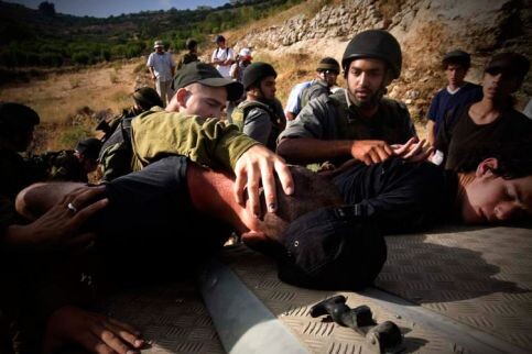 Israeli soldiers detain Israeli and international activists in Saffa Valley, June 2009. (Oren Ziv/ActiveStills)
