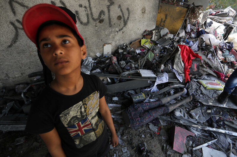 A Gaza City clothing shop destroyed in an Israeli strike, 5 May.