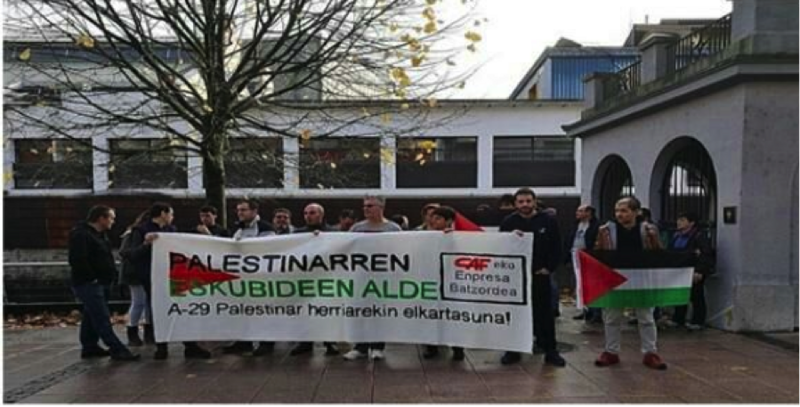 Frequent events on Palestine are held in the Basque Country. On 30 November in Donostia, the Palestinian writer Salah Jamal and the Basque chef Zigor Iturrieta participated in a village council-organized event “Flavors of Palestine,” where CAF’s involvement in the Jerusalem Light Rail project was again discussed.