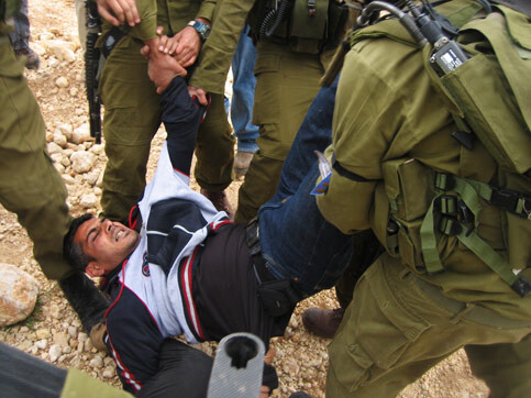 Iyad Burnat being arrested by Israeli soldiers at a demonstration in Bilin. (Haitham al-Katib)
