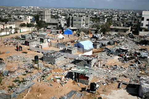 The high civilian death toll and the extensive destruction to public and private property indicate that one of the objectives of the Israeli political and military establishments was to cause the maximum possible damage in Gaza. As Nasser al-Amoudi rearranges the metal sign hanging from his tent, it is apparent that the Israeli army achieved that objective.