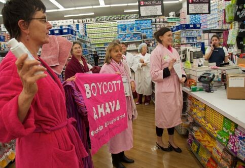 Boycott activists protest the sale of Ahava products at a US store (Steve Rhodes).
