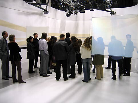 The participants visiting a studio of Deutche Welle (“Voice of Germany”). (Photo: Victor Kattan)