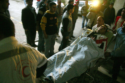 Palestinians transport an injured youth to a hospital after he was shot by Israeli special forces during an undercover Israeli military operation in the West Bank city of Ramallah, 15 November 2006. Eyewitnesses reported that one Palestinian was arrested and two others were injured. (MaanImages/Fadi Arouri)