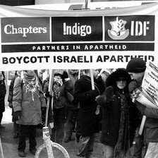 Israeli Apartheid Week culminated in a Day of Action calling for the Boycott of Chapters and Indigo Bookstores as part of the growing international movement of Boycotts, Divestment, and Sanctions against Israeli Apartheid Divestment, and Sanctions campaign. The boycott was instituted when it was learned that the major shareholders of Chapters and Indigo Bookstores, Heather Reisman and Gerry Schwartz, a Canadian couple, recently founded an organization called Heseg, which provides scholarships and other support to “lone soldiers”. These soldiers are those who have enlisted and served in the Israel Army of Occupation, and are mainly foreign nationals.
