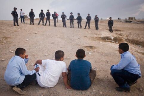 Bedouin children from al-Araqib watch as Israeli forces destroy their village, September 2010. (Oren Ziv/ActiveStills)