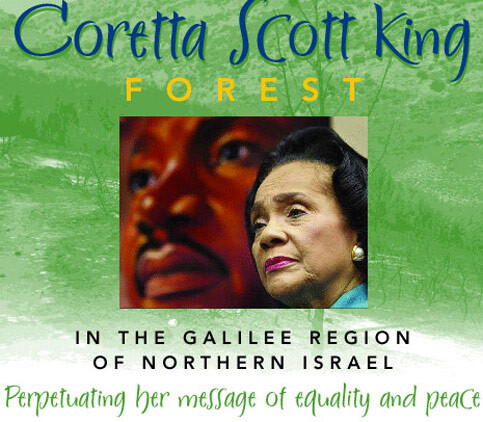Towards the end of April, the Associated Press filed a story reproduced by, amongst others, Ha’aretz, Guardian Unlimited, and CNN, reporting that “Israel will name a forest in northern Galilee after Coretta Scott King”, part of a wider campaign to replant “thousands of trees destroyed during last year’s war with Hezbollah”. At least 10,000 trees will be designated as a “living memorial to King’s legacy of peace and justice”, according to US Israeli ambassador Sallai Meridor. Although it was a small story that merited a few paragraphs of a news agency feed, unpacking this publicity stunt can be instructive in understanding just how successful Zionist propaganda has been in tapping into US popular culture, appropriating symbols for Israel’s benefit.