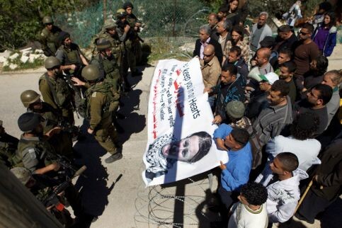 Demonstrators in the occupied West Bank village of Beit Jala carry a banner commenorating Rachel Corrie, seven years after her death, 21 March 2010. (Anne Paq/ActiveStills)