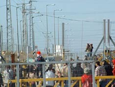 At the demonstration in Mas’Ha, protestors approach a gate section of the Apartheid Wall. (IWPS)