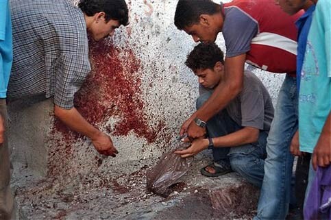 I saw Abu Nedal, the father of Nedal Al Madhown a 14 year-old boy, struggle to maintain his composure as he asked the exhausted doctors and ambulance drivers, “Was my son killed? Has he been killed?” (In fact, the boy was dead on arrival..) The majority of the dead and injured have been teens and children, obvious non-combatants.