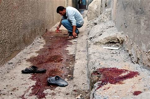 It smells unbelievably bad here. To walk down any street, if you dare to, you skirt, or sometimes unavoidably walk through, pools of blood. There are shreds of human flesh, some of them unrecognizable as human remains — all over, on rooftops, plastered to broken windows, on the street. The stench of rotting blood mixes with the more acrid odor of flesh burnt to black char by the rockets fired by the Israeli Army’s American-made Apache helicopters.