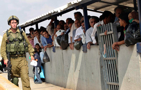 Palestinians wait to cross Huwara checkpoint near the West Bank city of Nablus, 15 October 2006. (MaanImages/Rami Swidan)