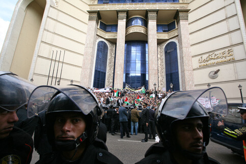 The major confrontation of the day, however, took place outside the Lawyers Syndicate, where the Muslim Brotherhood and other opposition groups had called for a huge demonstration in support of Gaza. While the Mubarak regime had tolerated similar protests organized by the Muslim Brotherhood earlier this week — seemingly on the condition that protestors avoid slogans on domestic issues and especially those aimed directly against the Egyptian president Hosni Mubarak — this time was different. According to eyewitnesses, large numbers of protestors were arrested in surrounding streets before even arriving to the demonstration.