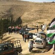 At a muddy field strewn with trash at the outskirts of al-Zaim, we climbed out of a small car and hiked towards Bab Al Shams, walking for 3 kilometers along a craggy path in the bone-chilling cold. There were no signs of any army presence on our way, only vehicle caravans heading out of the village to gather more supplies for the next day.