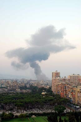 An Israeli air strike on the southern suburbs of Beirut, 7 August 2006. (Christian Henderson/IRIN)