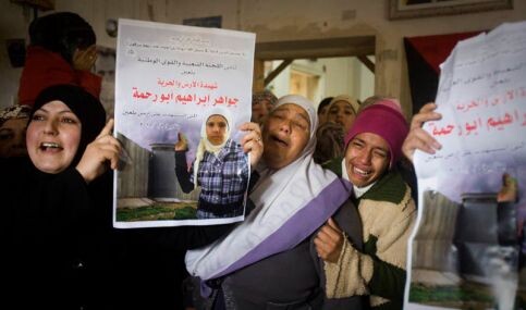 The family of Jawaher Abu Rahmah mourns during her funeral in the West Bank village of Bilin, 1 January 2011 (Oren Ziv/Activestills).