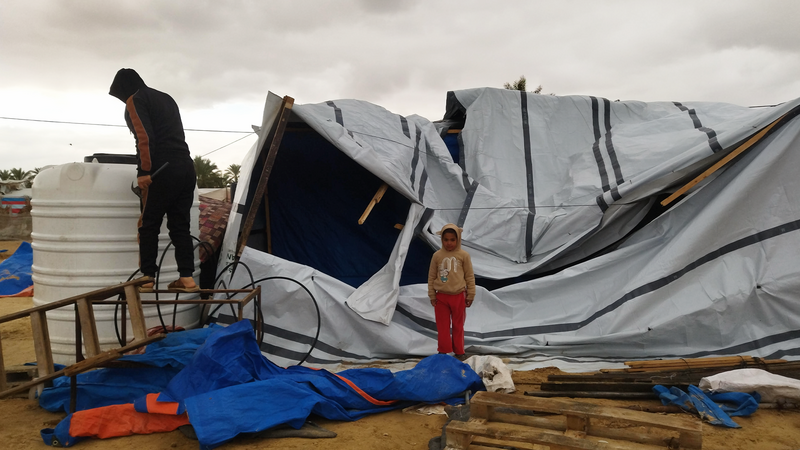 At the beginning of February, winter storms struck the area, uprooting some tents and flooding others.