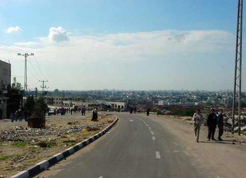 People fleeing northeast from Beit Lahiya to escape areas receiving fire from Apache attack helicopters. (Dr. Bill Dienst)