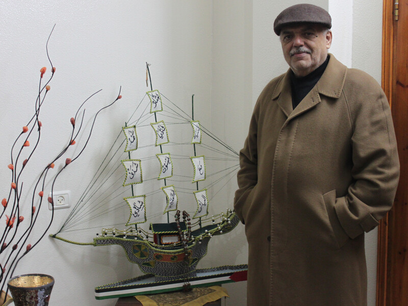 Abdel-Alim Da’ana with a model ship he built while in Israeli prison.