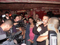 As I walk down the darkened staircase into a muggy basement in this lower eastside dive bar, a scruffily bearded supporter smiles and waves a four-foot wide Palestinian flag. The chatter begins as the room fills with anxious people awaiting the show. The young crowd came out to support Free the P, the new CD compilation of “hip-hop and spoken word, dedicated to the youth of Palestine.” The proceeds will go to Slingshot Hip-hop, “a documentary film that focuses on the daily life of Palestinian rappers living in Gaza, the West Bank and inside Israel.” Within moments, our hostess, Arab-American comedienne Maysoon Zayid, takes the ground level, makeshift stage and gets the crowd going with her dry, political humor.