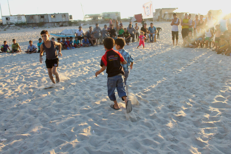 Young relatives of four children killed by Israeli shelling while playing football on a beach in July play their game that was violently cut short, 7 September.