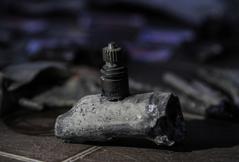 Issam Jouda has collected shrapnel from the missile that killed five members of his family. Some of the pieces are marked with Made in the USA or France.