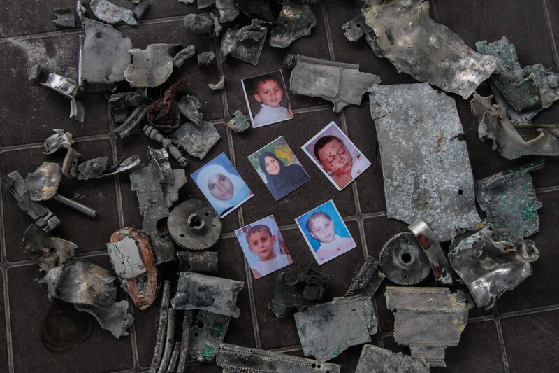 Issam and Rahaf Jouda, Thaer’s father and 11-year-old sister, were inside the house when the missile hit. Issam rushed outside and found the dismembered bodies of his wife Rawiya, daughters Tasnim and Raghida and sons Muhammad and Usama. Only Thaer had survived.
