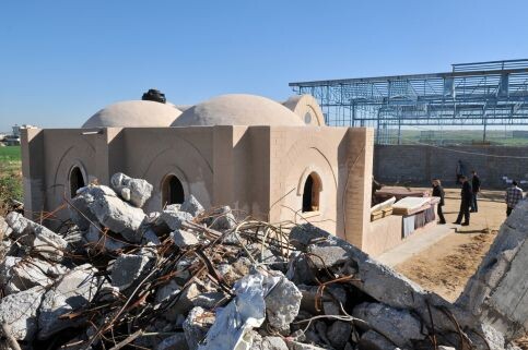 One of Emad al-Khaldi’s pilot projects to provide Palestinians in Gaza with shelter. (Emad al-Khaldi)