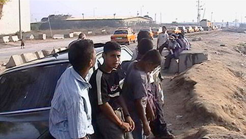 Palestinian wait by the Abu Holy checkpoint to see if the rumours are true. Today, at least, the wait will not be in vain.