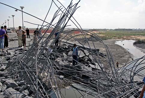 Palestinians look at a bridge in the Gaza Strip after it was attacked by Israeli missiles during an air strike on Gaza. (MaanImages/Wesam Saleh)