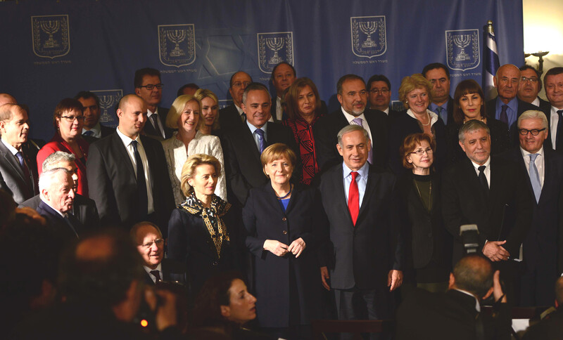 The German chancellor and the Israeli prime minister met with their respective cabinets in Jerusalem in February.