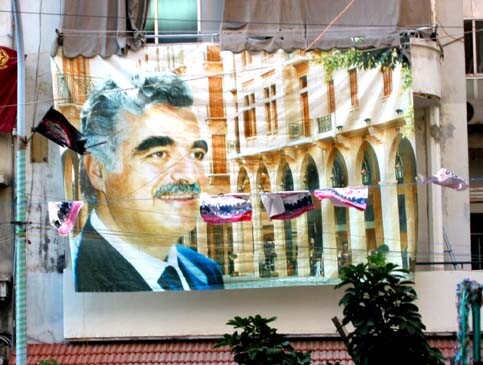 Rafik Hariri continues to hold massive influence over Lebanese politics even after his assassination in February 2005. Pictured is a banner of Hariri hung on a building in the Hamra district of Beirut.