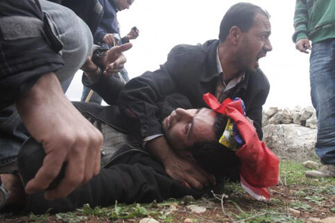Khamis Fathi Abu Rahmah after being shot with a tear gas canister by Israeli forces near Bilin. (Haitham al-Katib)