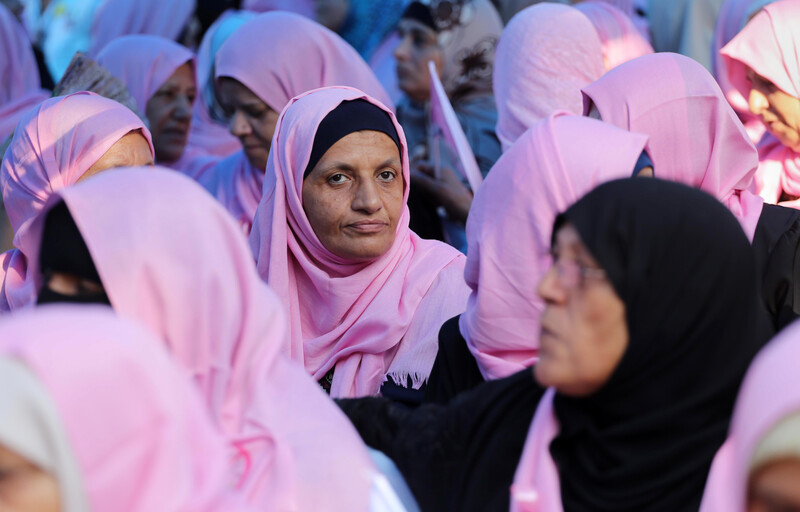Cancer patients take part in a rally to raise awareness about Breast Cancer in Gaza City on 26 October.