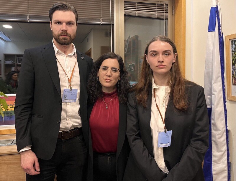 Azov members Illia Samoilenko and Yulia Fedosiuk met with Naama Lazimi of Israel’s Labor Party. (AzovstalFam/Twitter)