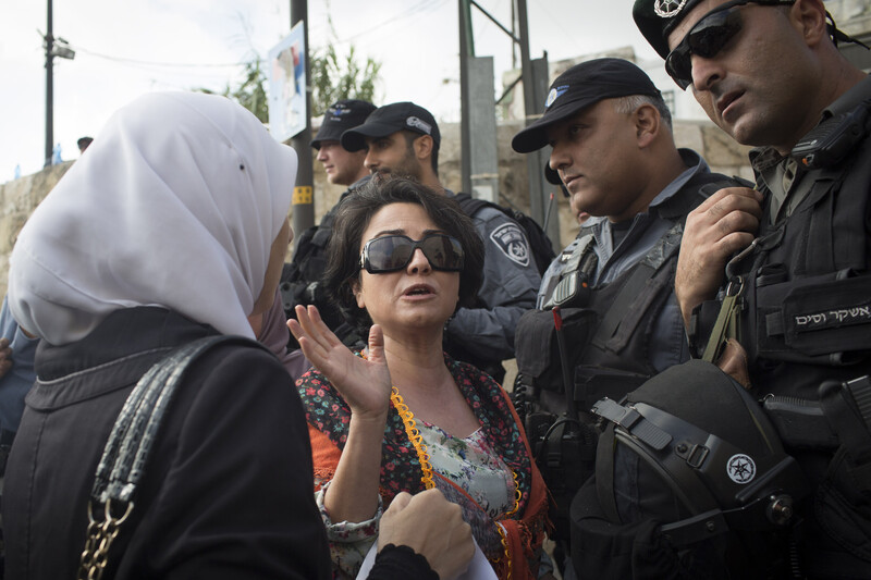 Haneen Zoabi argues with Israeli police as she attempts to enter al-Aqsa mosque during a protest outside Jerusalem’s Old City on 15 October 2014.
