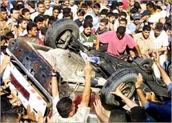 The fifth rocket launched by the Israeli helicopter gunship missed the targeted car and hit the Abdul Fatah Nijm family home, located only a few metres from where the car was hit. No injuries were reported.