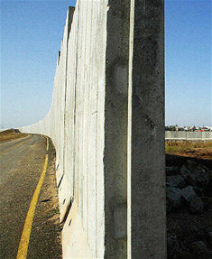 [*it is not clear whether the shorter fence sections, about 6 meters in height, are first or final stages in Israel’s construction of the barrier.]