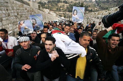 Palestinians attend the funeral of Abir Aramin after she was killed by Israeli soldiers in Anata refugee camp near Jerusalem, 19 January 2007. (MaanImages/Moamar Awad)