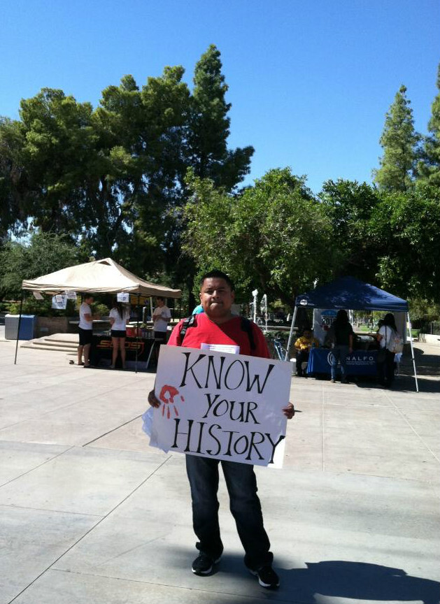 The M.E.Ch.A.-SJP action attempted to change Columbus Day into a period of reflection, for people to learn the truth of colonialism and the genocide that resulted from Columbus’ invasion.