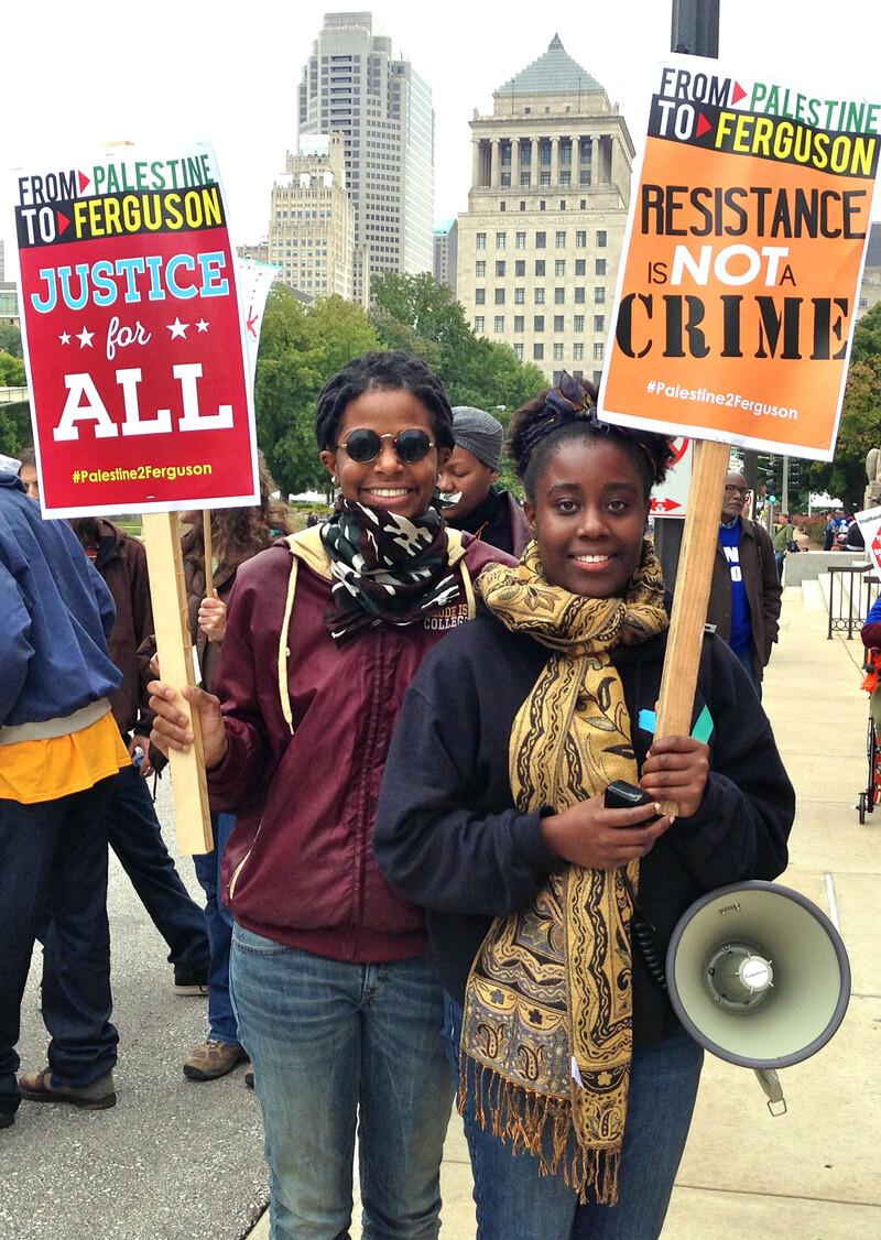 While Palestine advocacy has traditionally been excluded from progressive and social justice circles in the United States, incredible displays of mutual solidarity between Ferguson and Palestine have been featured regularly in the streets of St. Louis and beyond since Brown’s grisly slaying on 9 August. And the “weekend of resistance” was no exception.