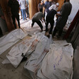Palestinians search through the debris after an Israeli attack on al-Mawasi, southern Gaza Strip, that killed 21 Palestinians, including five children, on 5 December 2024.