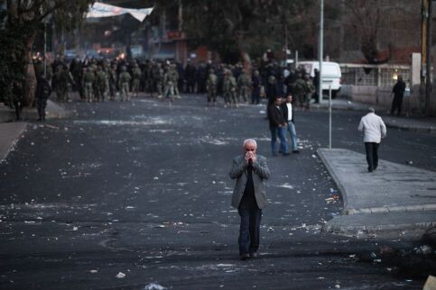A man walks away from an area where clashes happened between Hariri supporters and the Lebanese army after the former prime minister lost his position when his government collapsed. (Matthew Cassel)