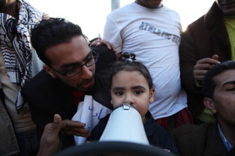 A girl leads chants in Cairo’s Tahrir Square, 31 January 2011. (Matthew Cassel)