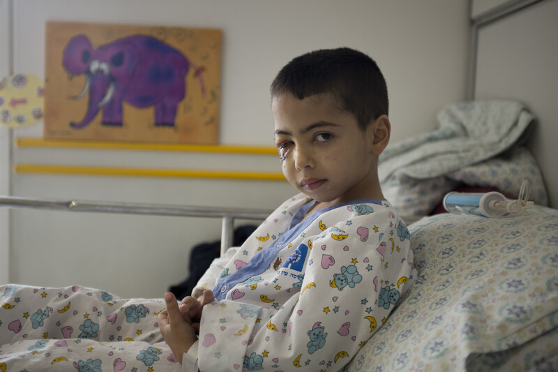 Muhammad Abed, a five-year-old from the East Jerusalem neighborhood of Issawiyeh, recovers at a hospital after surgery on 28 December. The child was shot in the eye with a rubber bullet fired by Israeli Border Police after a school bus dropped him off in front of his home on 24 December.