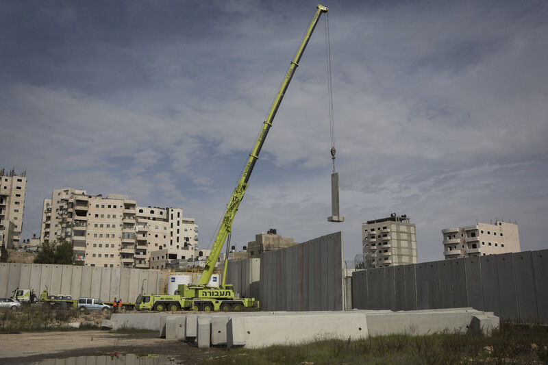 A concrete slab is installed along the Israeli-built wall in Shuafat refugee camp in occupied Jerusalem on 3 December.