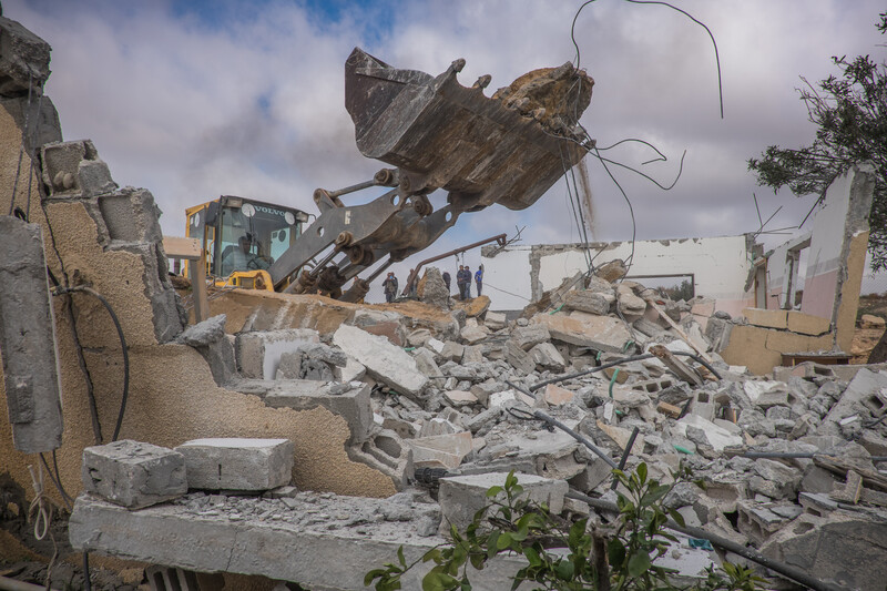 A family demolishes their own home in the unrecognized Bedouin village of Sawa in the Naqab (Negev) desert on 23 December. Israeli police ordered seven families to destroy their homes or be subjected to a police raid and fines.